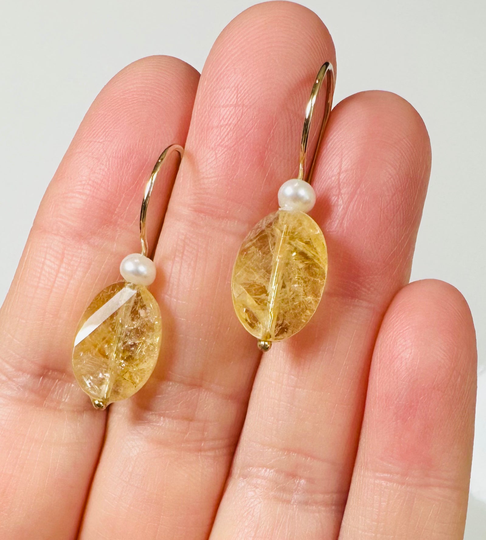 Citrine and Pearl in 9ct yellow gold hooks. These natural citrine stones have an attractive faceted cut!