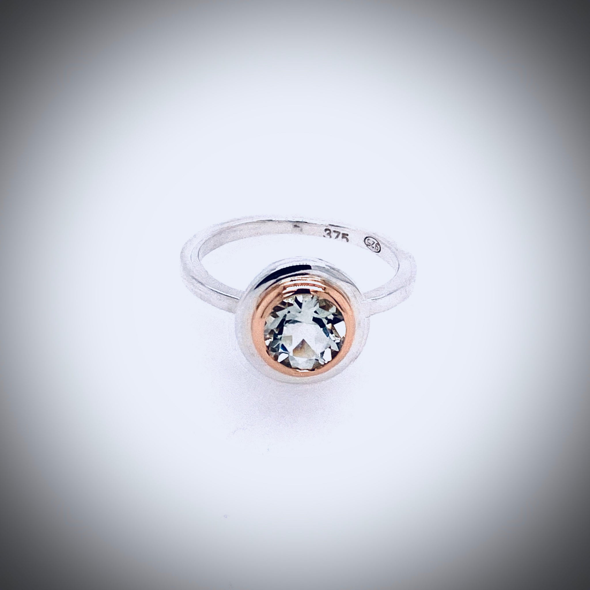 Beautiful handmade ring using Natural Green Amethyst faceted stone, 9ct Gold and Sterling Silver.