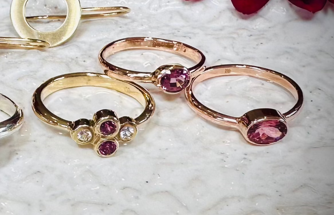 Lovely deep pink Tourmaline 9ct rose gold ring.Size N/12.