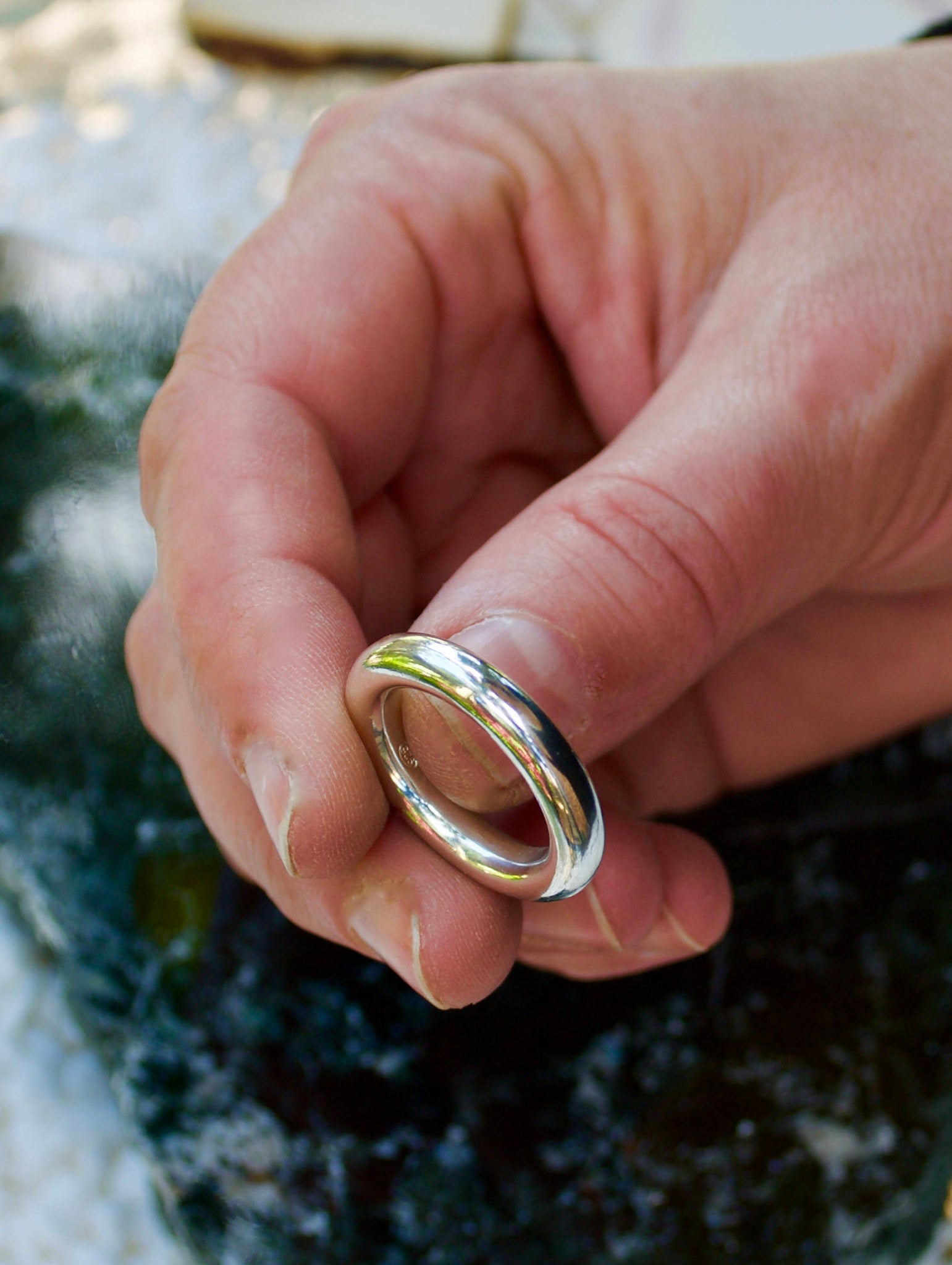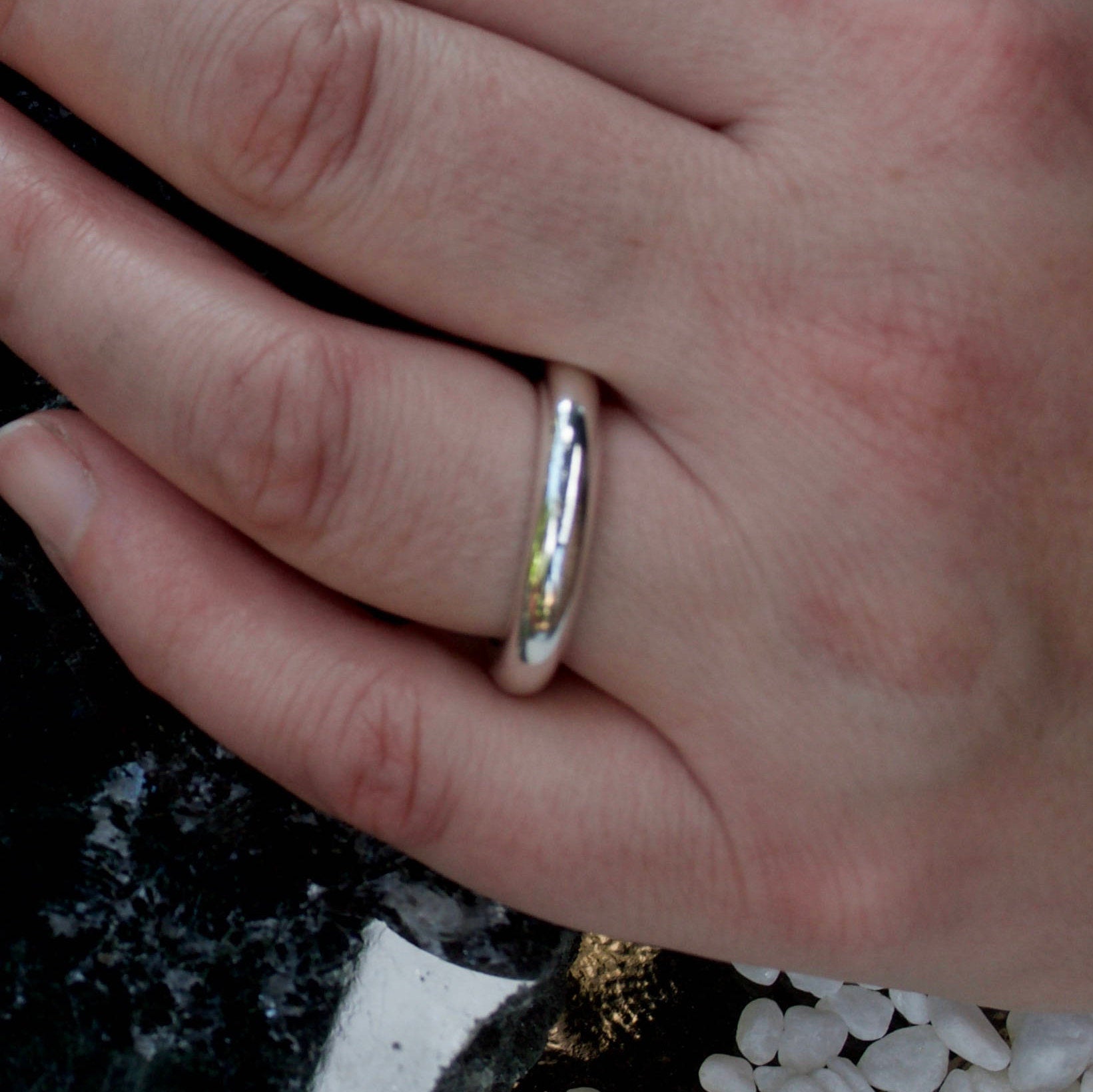 Handcrafted natural Silver Stackable Ring. This solid sterling silver ring is called the "Heavy Weight Round Ring". It is handmade in solid sterling silver 925. In the pictures it has been finished with a high polish on the inside and outside. It can also be made in a satin (matt) silver finish, or a hammered silver finish. This solid stackable ring draws on my love of understated chunky jewellery. It is a very comfortable ring to wear and is definitely suitable for every day. It can be worn as an individual ring stacked with other rings. Easy to co-ordinate with other jewellery pieces. Being a solid silver ring, this piece has some weight to it and will stand the test of time.