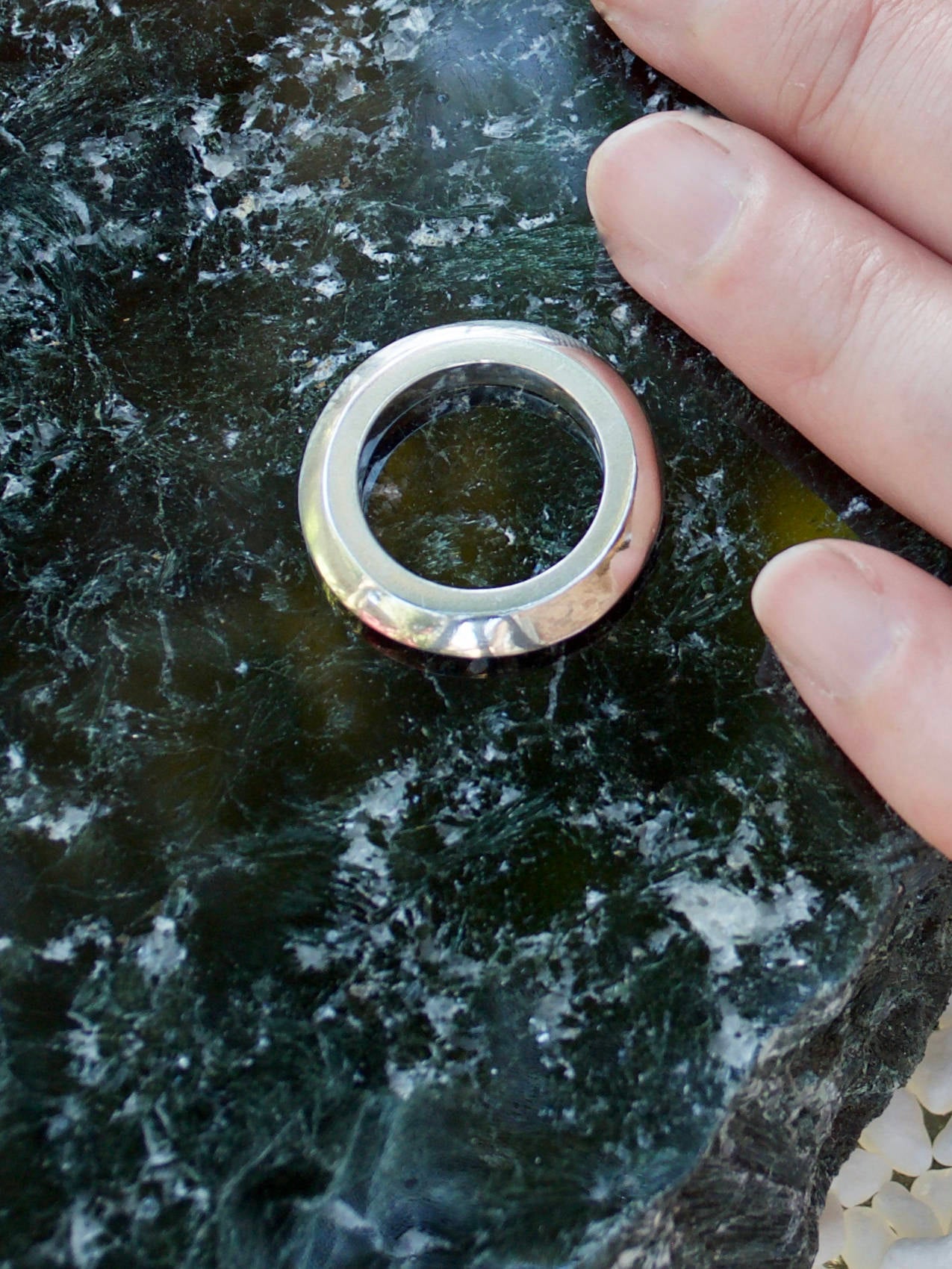 Handcrafted natural Sterling Silver ring. This solid sterling silver ring is called the "Peak Ring". It is handmade in solid sterling silver 925. In the pictures it has been finished with a high polish on the inside and outside. It can also be made in a satin (matt) silver finish. This substantial stackable ring draws on my love of understated chunky jewellery. It is a very comfortable ring to wear and is definitely suitable for every day. It can be worn on it's own or stacked with other stackable rings. Easy to co-ordinate with other jewellery pieces. Being a solid silver ring, this piece has some weight to it and will stand the test of time.